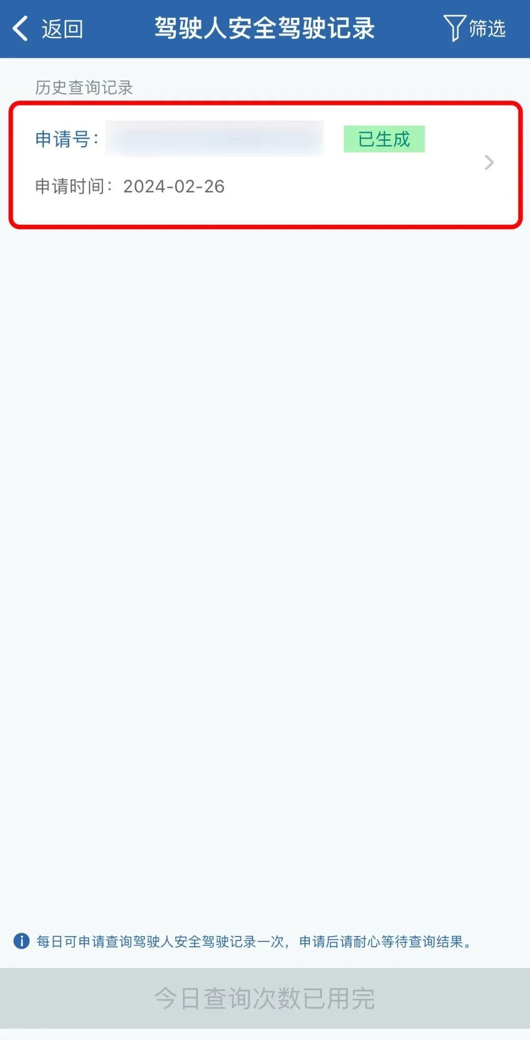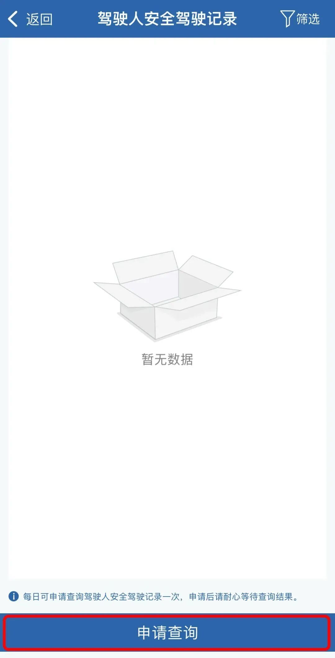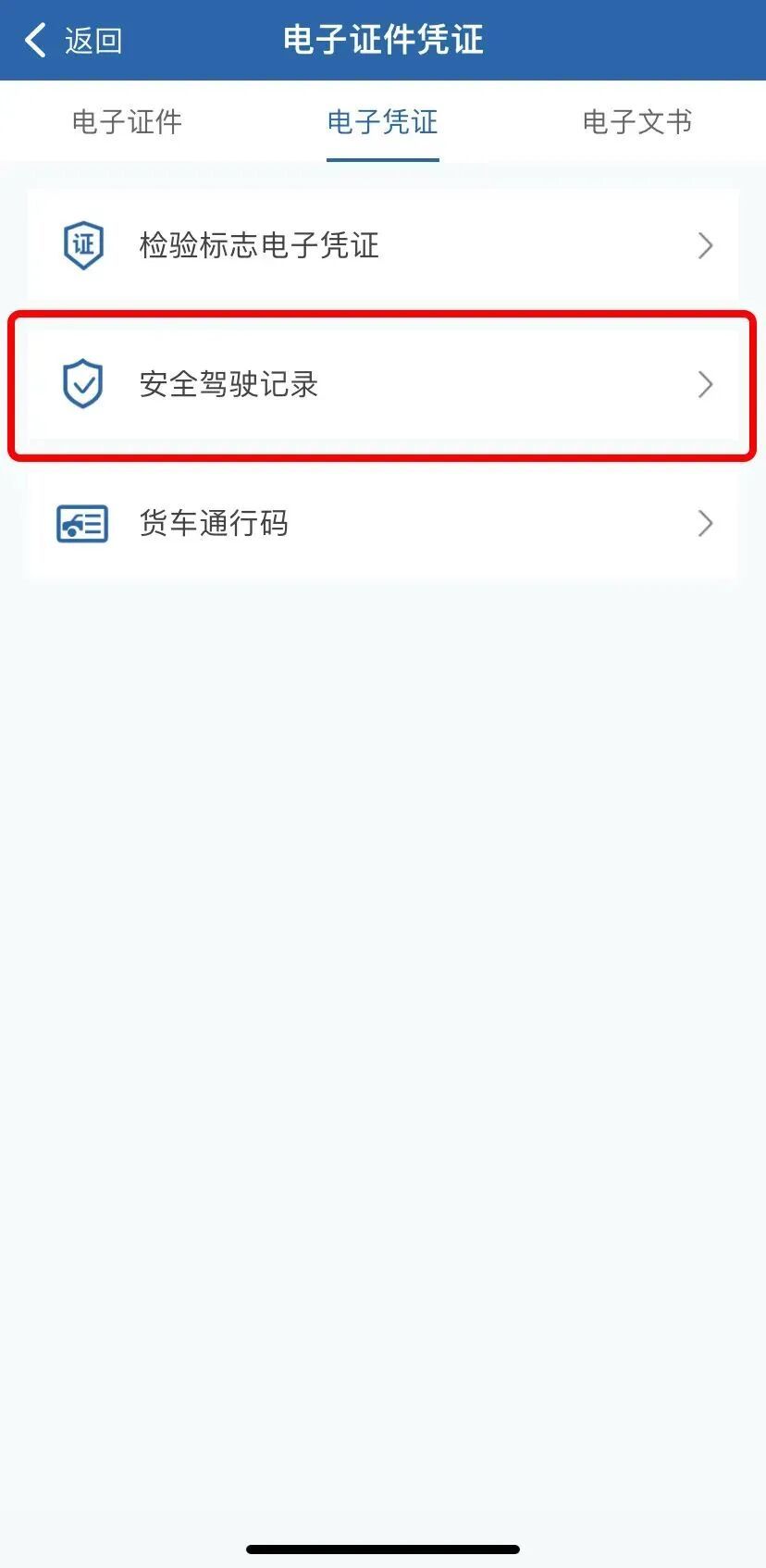 “交管12123”APP→首页上方【电子证件凭证】→安全驾驶记录→页面底部【申请查询】→信息显示通过即可点击对应内容查看。
